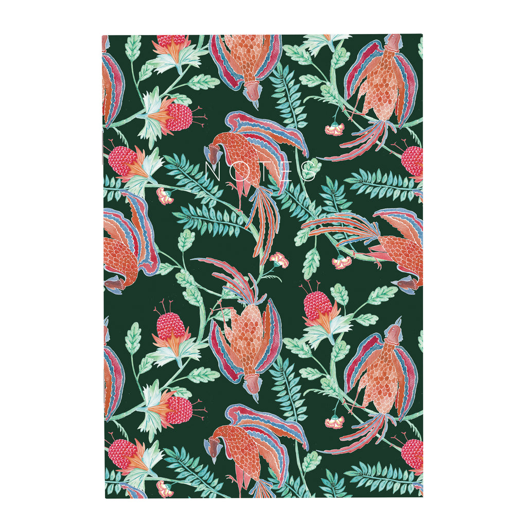 An A5 (148 x 210mm) notebook covered with a pretty pattern of phoenixes dancing in the Emperor's garden. A great size to carry around in your bag and perfect for jotting down notes, shopping lists and adventure plans.