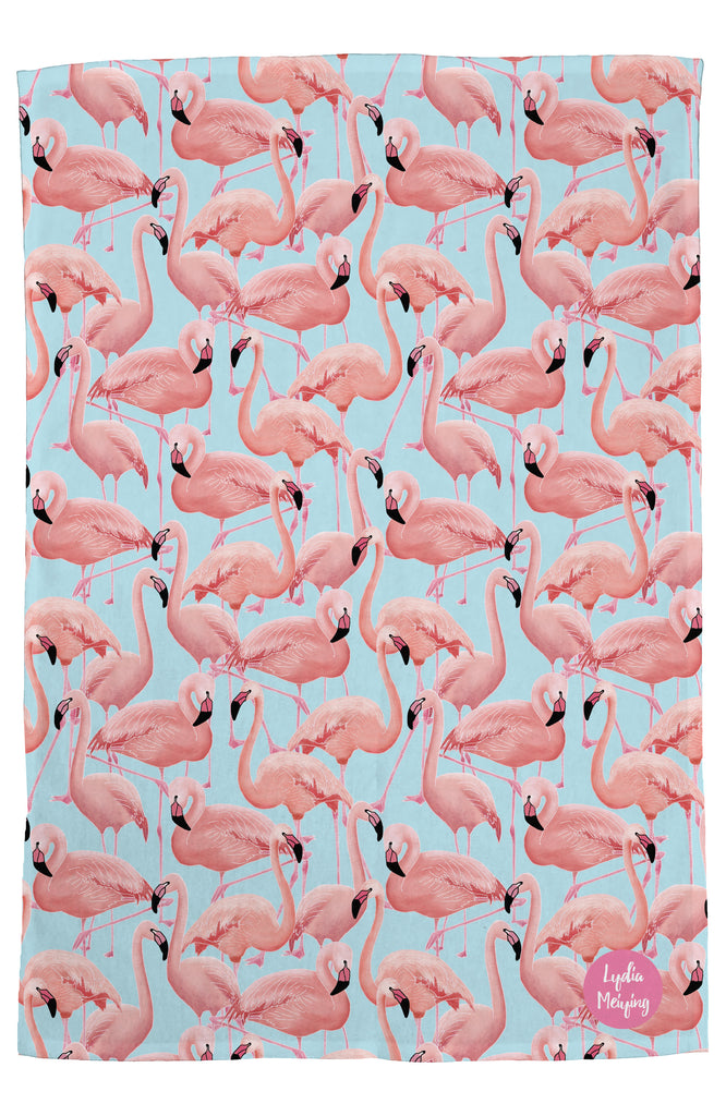 This cotton tea towel with a fun pattern of a flamboyance of flamingos will brighten up any kitchen.