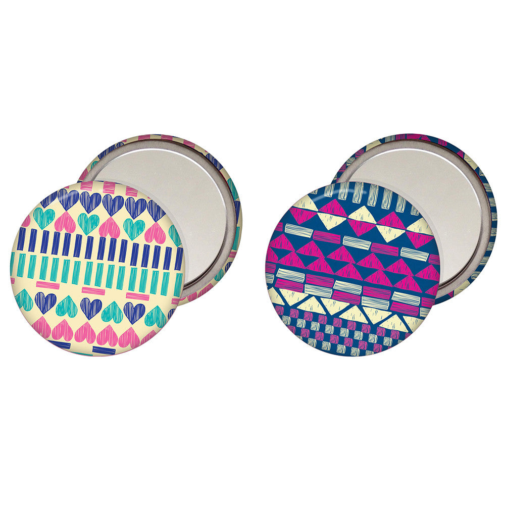 A cute pocket mirror to carry in your pocket, hand bag or purse. Featuring a fun hand drawn pattern in a choice of different colours.