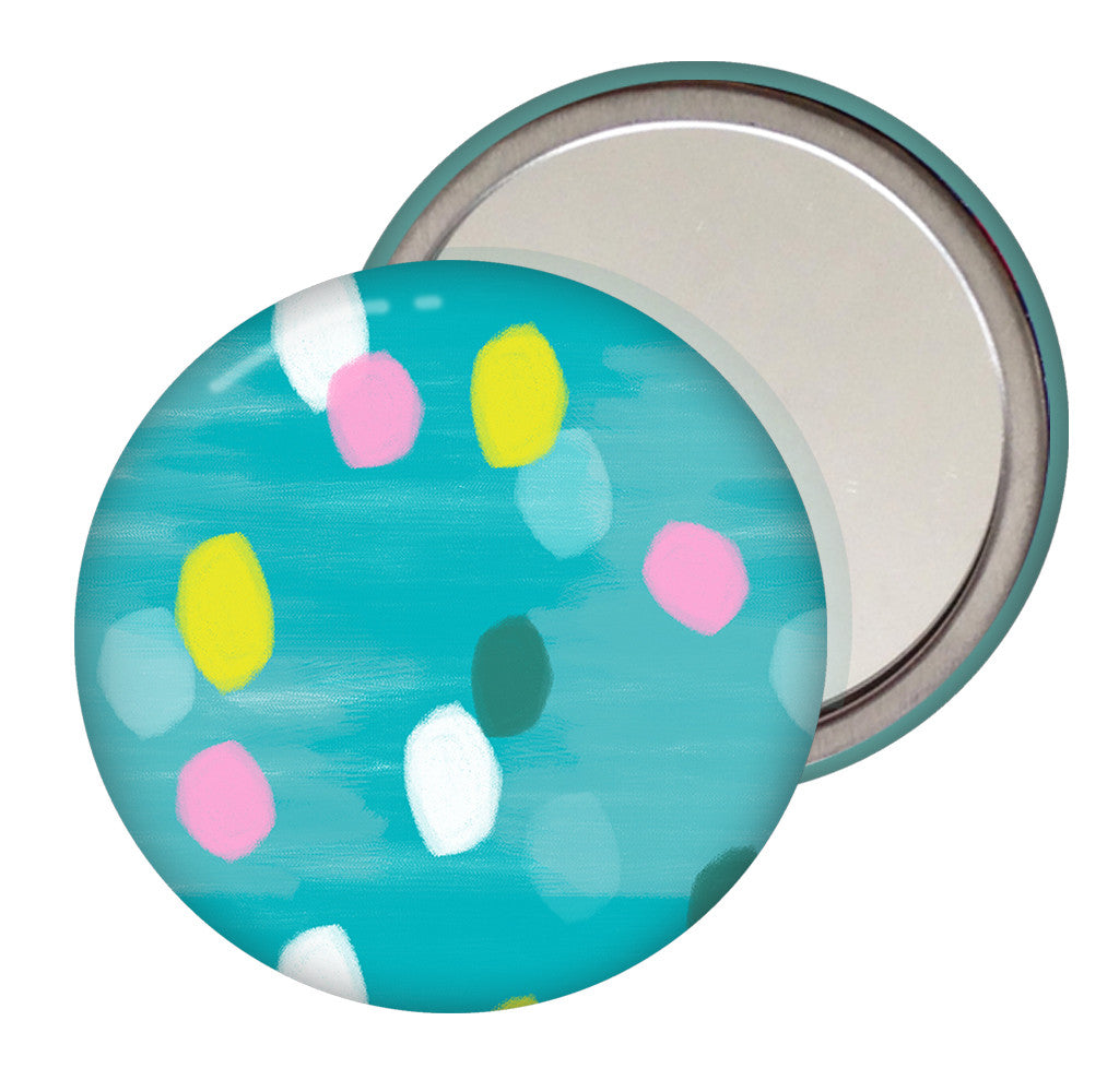 A cute pocket mirror to carry in your pocket, hand bag or purse. Featuring a cute spotty pattern with a choice of different background colours.