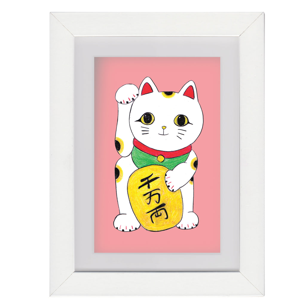 This cute print of a Maneki Neko (Japanese Lucky Cat) is looking for a home! Ideal as a present for new babies, children's bedrooms (and adult bedrooms!) or as a treat for yourself to bring luck into your home.