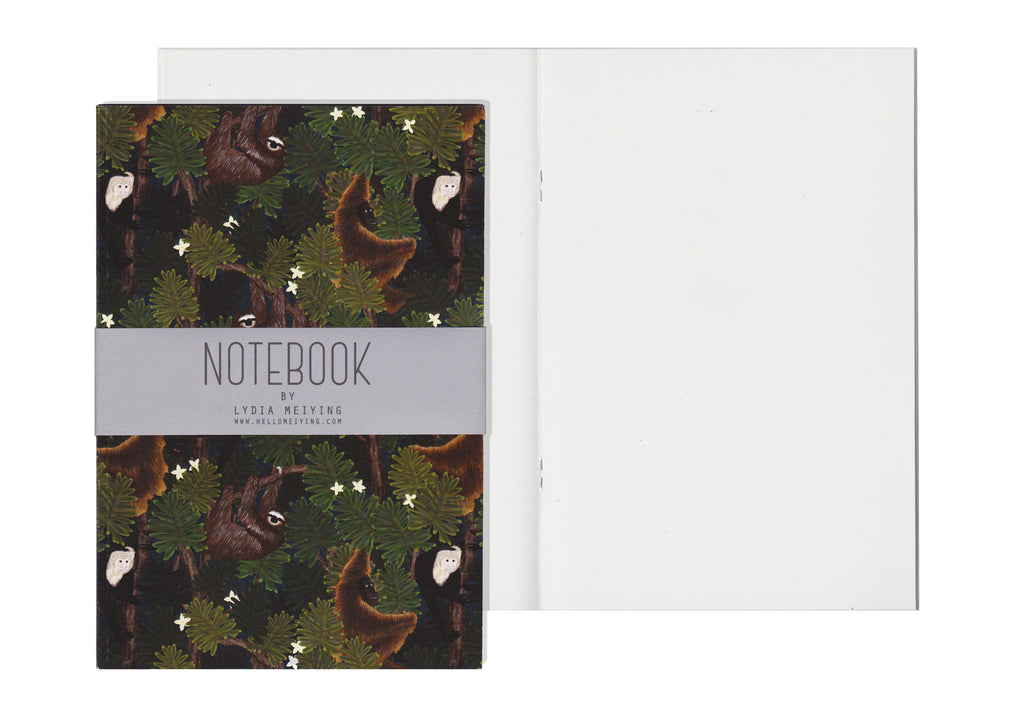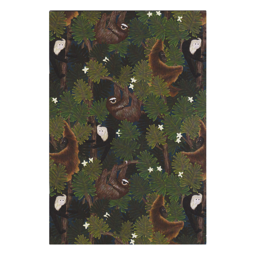 An A5 (148 x 210mm) notebook featuring a pattern of monkeys and sloths hiding amongst the foliage. A great size to carry around in your bag and perfect for jotting down notes, shopping lists and adventure plans.