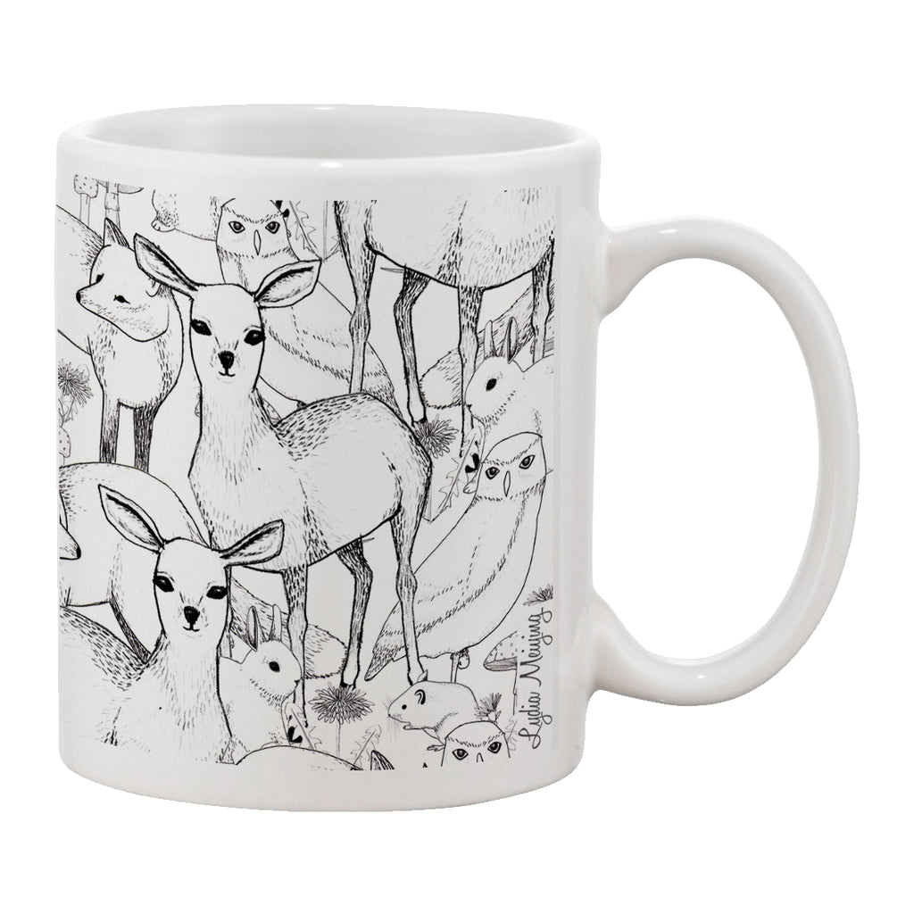 This ceramic mug featuring my most popular Woodland design. A hand drawn illustration of forest friends - deers, mice, rabbits, foxes and more! The ideal mug for your morning brew, it would also make a great gift for birthdays, as a Christmas gift, to celebrate a new home, wish someone the best for moving away to university or just as a 'thinking of you' present.